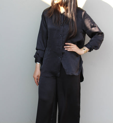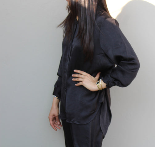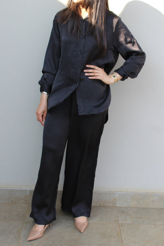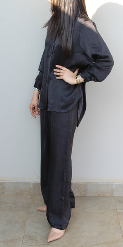 2-Piece Satin Set: Black