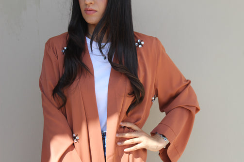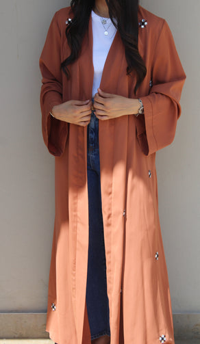 Gia Beaded Abaya: Burnt Orange